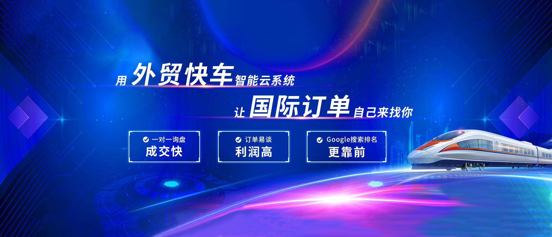 外貿(mào)快車是基于大數(shù)據(jù)和云計(jì)算的智能網(wǎng)絡(luò)營(yíng)銷系統(tǒng)平臺(tái)。 依托五大功能系統(tǒng),幫助外貿(mào)企業(yè)智能創(chuàng)建多語(yǔ)種營(yíng)銷型網(wǎng)站和先進(jìn)的VR展示網(wǎng)站,通過(guò)采購(gòu)商數(shù)據(jù)挖掘,以及搜索引擎營(yíng)銷、SNS等多渠道網(wǎng)絡(luò)營(yíng)銷,實(shí)現(xiàn)全球推廣和新興市場(chǎng)開發(fā)。